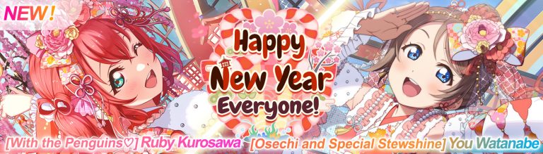 *『Guaranteed UR! New Year’s First Dream Scouting』 scouting can be performed for 3000 paid Love Gems! A UR member is guaranteed from the scouting pool, which includes the limited birthday members!
