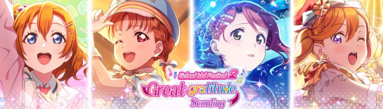 You can use the ’10x Scouting ticket (School idol festival 2 Great gratitude Scouting)’ that you get from the “School idol festival 2 Great gratitude Login Bonus” to scout for the “School idol festival 2 Great gratitude Scouting”!